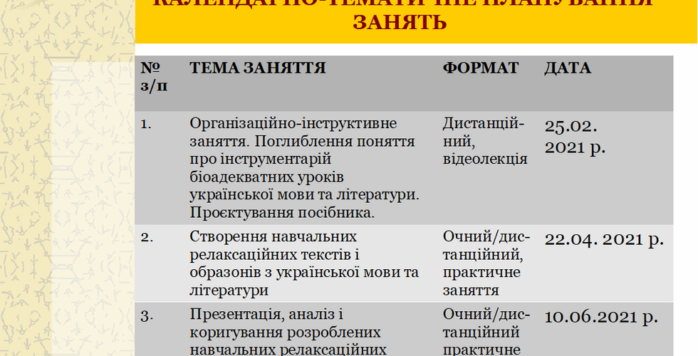 25 лютого 2021 року в дистанційному форматі відбулося перше заняття обласної творчої групи для філологів-україністів щодо створення електронного навчально-методичного посібника «Інструментарій біоадекватних уроків української мови (7-9 класи)».